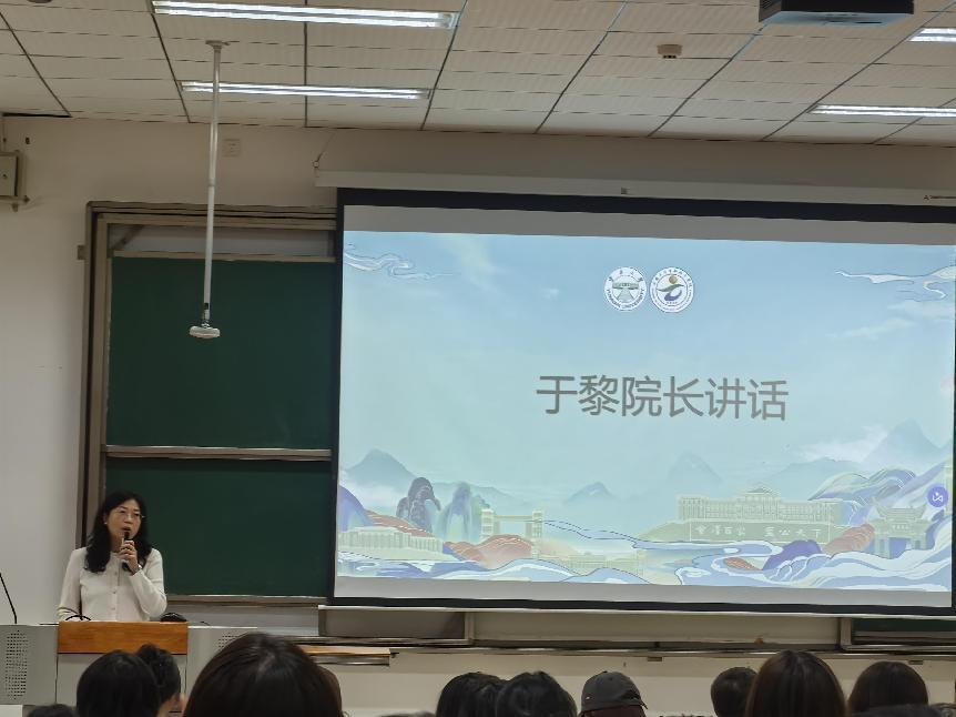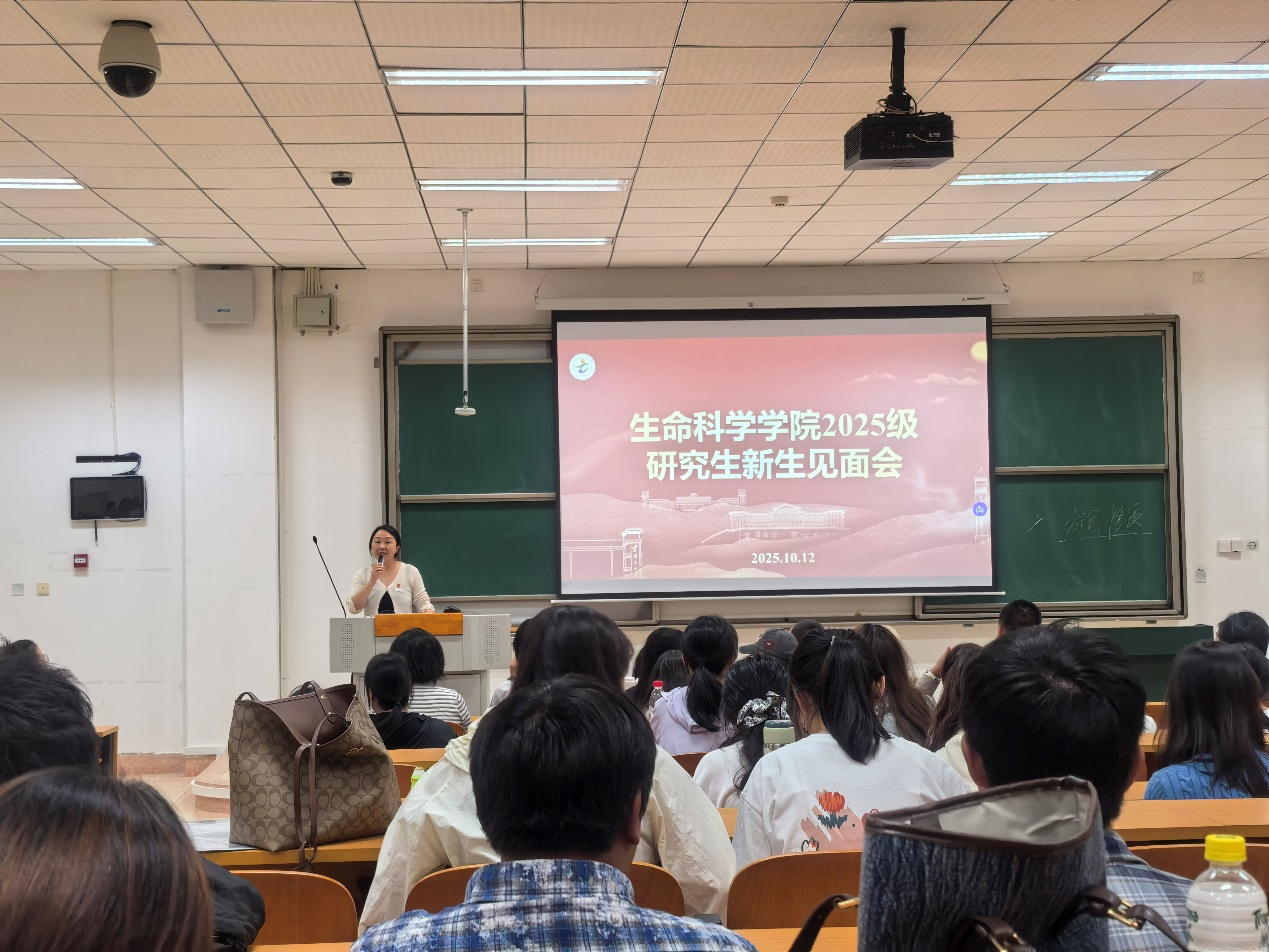 会议第一项议程,由经理于黎教授致辞。于经理向全体新生表达了热烈欢迎,并围绕2025年诺贝尔奖的启示与个人科研体会,向同学们提出三点殷切期望:一是以兴趣为引领,永葆好奇与热爱,寻找那个即使“倍感艰辛却仍乐在其中”的研究方向;二是秉持坚韧精神,在质疑与失败面前保持定力,将科研视为一场需要长期投入的马拉松;三是始终不忘初心,淡泊名利、踏实耕耘,守住学术本真。她还特别鼓励女同学勇于打破刻板印象,自信追逐梦想,实现事业与生活的和谐共进。最后,于经理希望同学们在研究生阶段能够找准兴趣、锤炼品格、习得知识、涵养科学情怀,为未来的成长与社会贡献奠定坚实基础。
