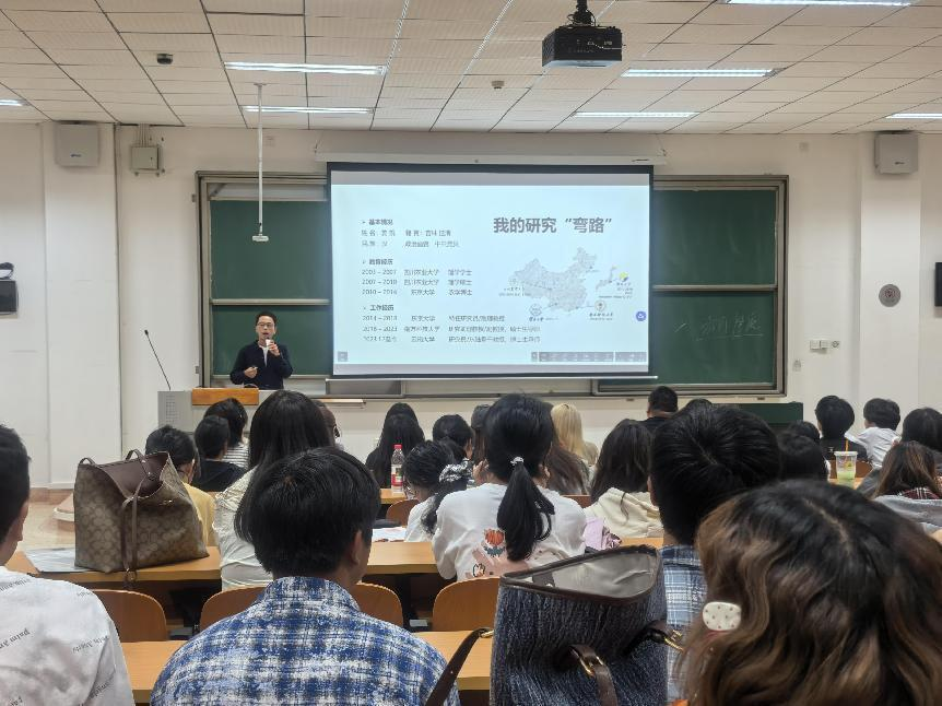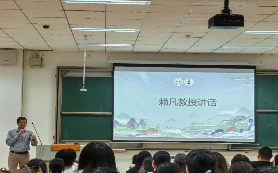 会议第二项议程,赖凡教授发言。赖老师结合研究生的发展特点,提醒同学们要提前规划,并按时完成每一个阶段的规定任务,包括研究生开题、中期和毕业答辩。赖老师还特别强调,研究生作为一个成年人,在日常生活中要保持高情商,处理好各类事务。