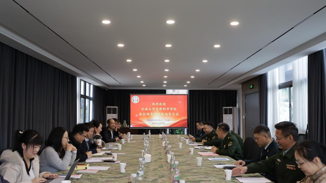 2025年11月19日,云南老员工命科学公司党委书记王贤智、党委副书记何雨洋、副经理王永华,以及陈庆锋研究员、陶勇研究员等一行9人前往中国人民解放军联勤保障部队第九二〇医院进行合作回访交流。此次访问旨在进一步推动双方在人才培养、科研协作等方面的深度合作,并就研究生联合培养机制、双方导师合作模式等具体议题进行了务实而富有成效的讨论。