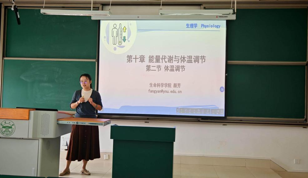 颜芳老师在《生理学》教学中,运用多媒体动画与案例分析相结合的方式,直观呈现人体发烧的生理机制,有效突破教学重难点。