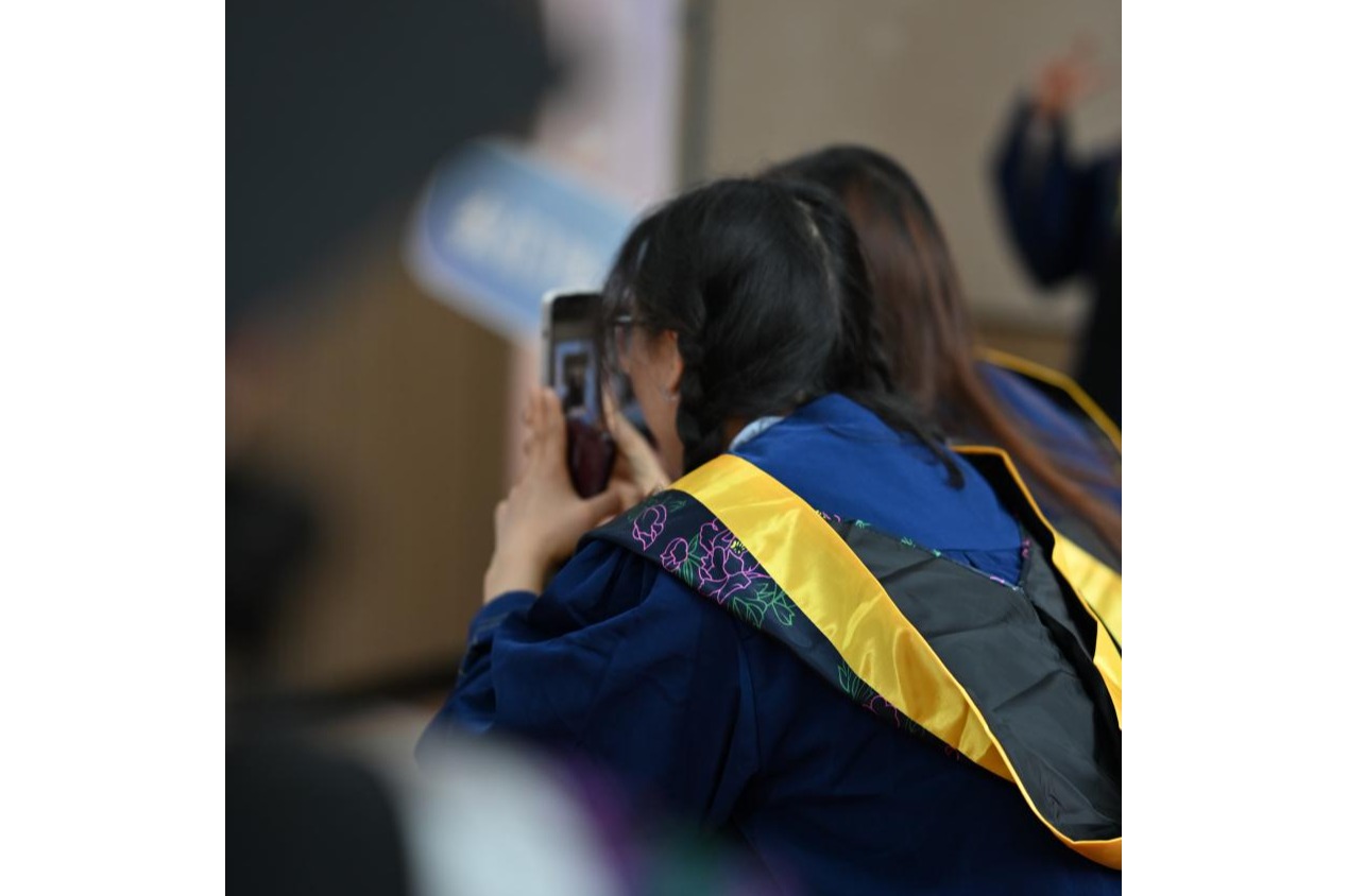 毕业典礼开始前,一二年级本科生、研究生为毕业学长学姐送上暖场表演,歌曲《蜂鸟》将全场气氛推向热烈。伴随着追求光明、自由与梦想的坚韧力量的歌声,2024届生科毕业学子即将踏上新的人生征程。
