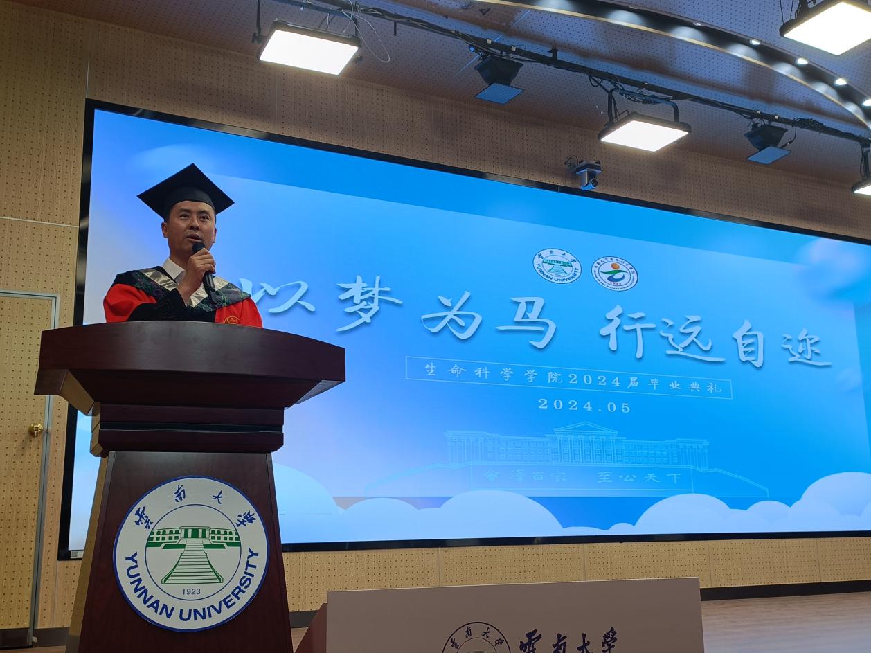 杨崇林以“常记泽湖波底月,更向云山万里行”寄语2024届毕业生,在过去四年里,云大生科与公司师生一同成长!在团队队伍,科学研究、教学科研平台等方面的建设取得了长足的进展。杨崇林说,2024届毕业生们即将各自踏上人生之征途,接受各种挑战和考验。祝愿大家顺应时代洪流,勇于承担时代赋与的使命,努力提升自己的专业能力和品德修养,不负韶华,不负此生! 期待未来云大生科学子们硕果累累,满载而归!